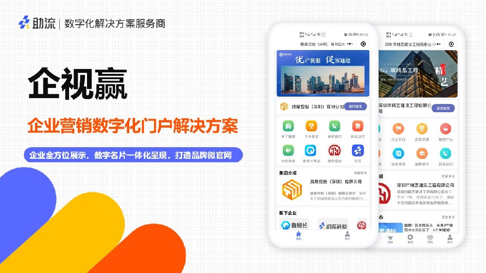 企視贏讓每個(gè)企業(yè)輕松擁有專屬的企業(yè)門戶小程序,為企業(yè)打造專屬的數(shù)字舞臺(tái)。企業(yè)可以充分展現(xiàn)自身優(yōu)勢(shì),吸···